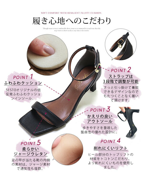 【15日0時〜週末限定★10%OFFクーポン】サンダル レディース ストラップサンダル ミドルヒール 6cm スクエアトゥ ストラップ アンクル ストレートヒール 削れにくいかかとゴム シンプル かわいい 歩きやすい 旅行 疲れない ブラック 黒