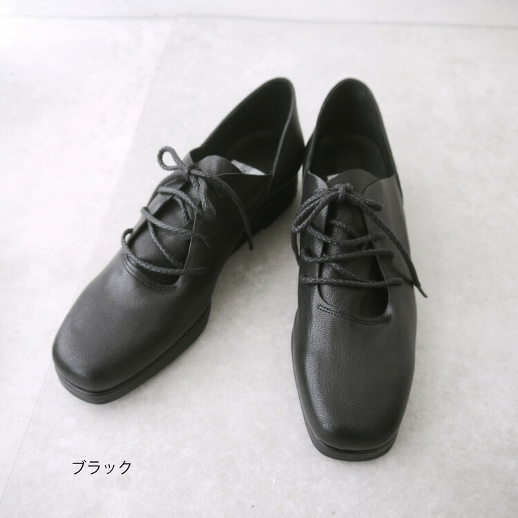 【日本製】【本革】トーム付きレースアップシューズス BLACK 黒 3.5cmヒール【送料無料】【22.5cm-24cm】