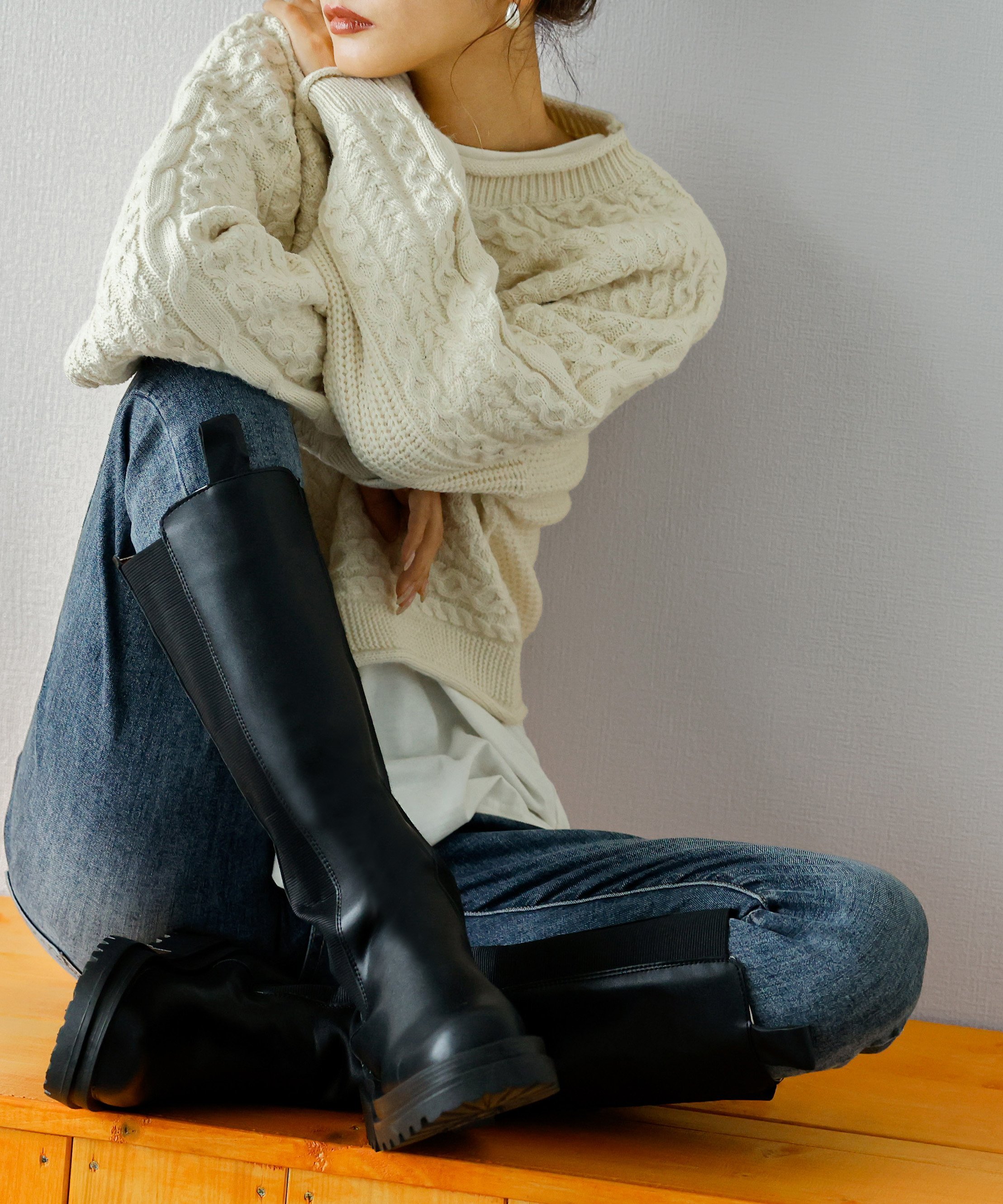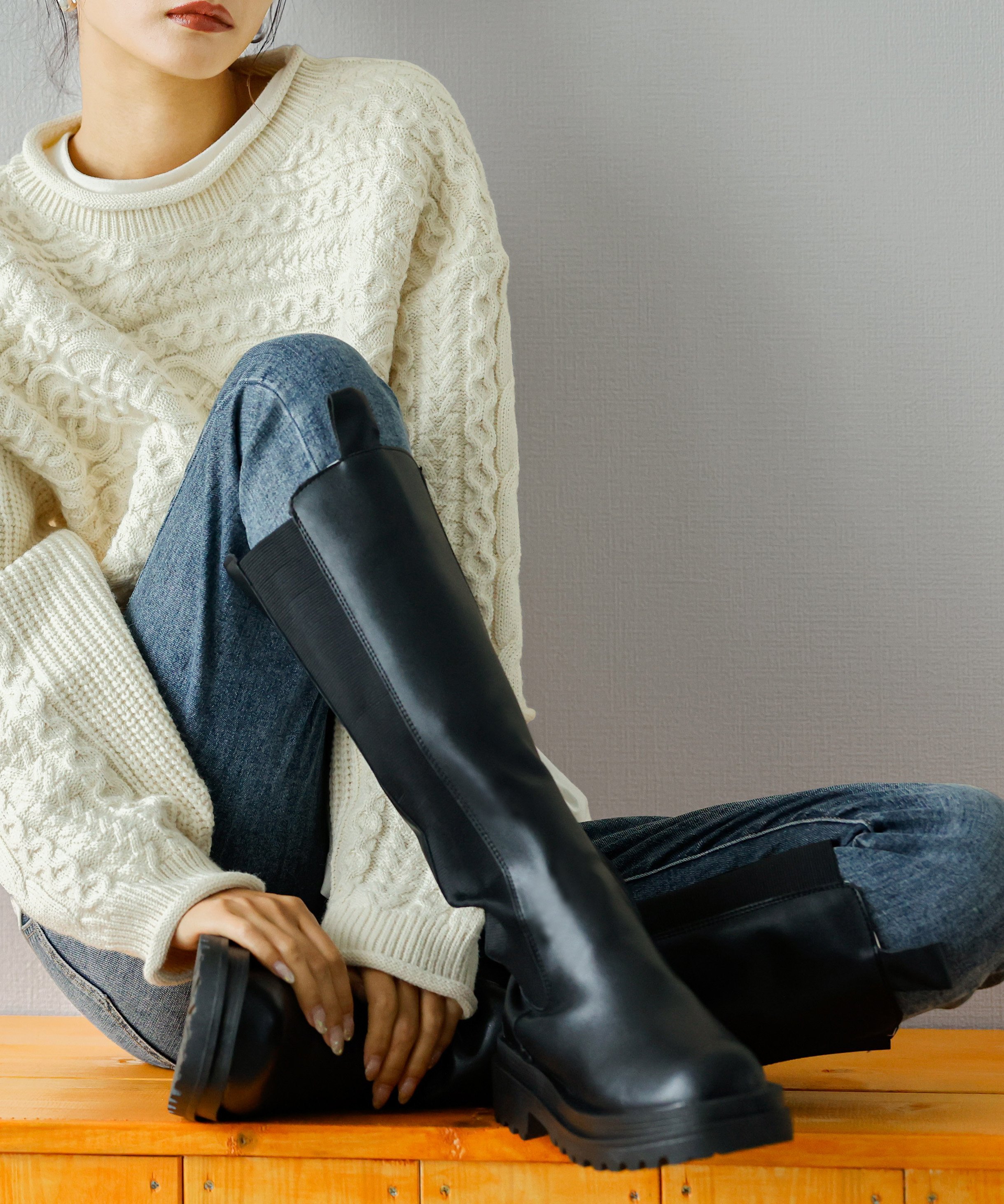La-gemme サイドゴアロングブーツ ラジュール シューズ・靴 ブーツ ブラック【送料無料】