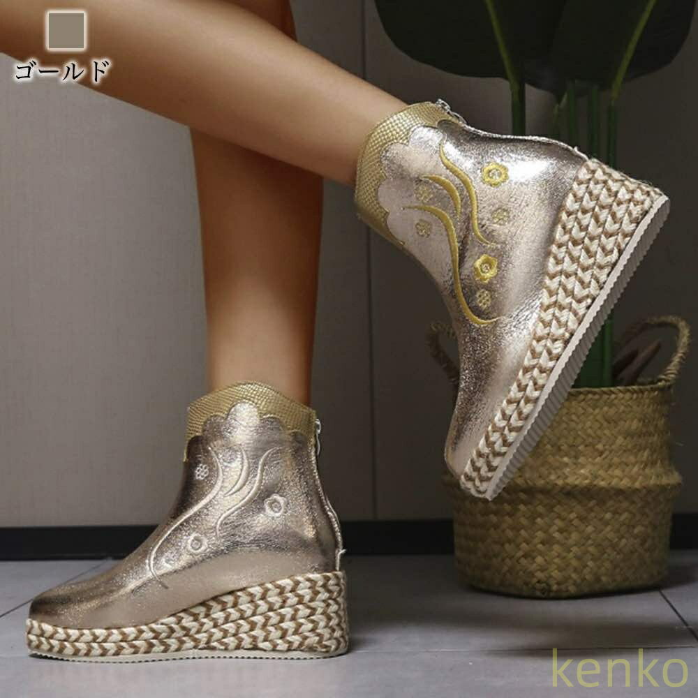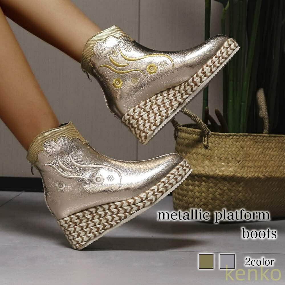 【送料無料】ブーツ レディース メタリック厚底ブーツ ミドル 暖かい ミドル丈 革 夏 防水 おしゃれ 軽い 歩きやすい 兼用 春 ウォーキング レースアップ きれいめ 滑らない 防寒 雨 秋 ショ?