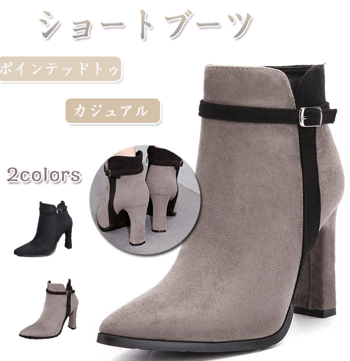【送料無料】アンクルブーツ ベルト飾り 暖かい イベント パーティー 大きいサイズ ポインテッドトゥ カジュアル 誕生日プレゼント おしゃれ 20代 30代 街歩き グレー 卒業式 カジュアル 厚?