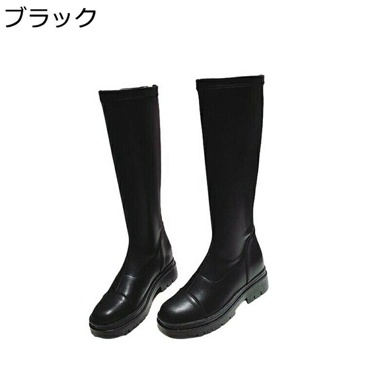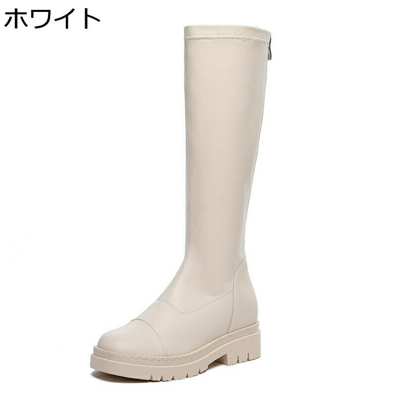 ブーツ レディース 膝丈 ロングブーツ 厚底 ストレッチブーツ チャンキーヒール 歩きやすい スムース スエード ラウンドトゥ 白 黒 秋冬