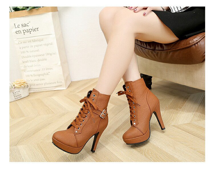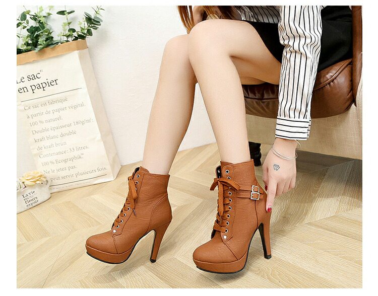 【厚底タイプ】【ゴム紐レースアップ】【柔らかい本革】【ショートブーツ】【シンプルデザイン】【内側ファスナー】