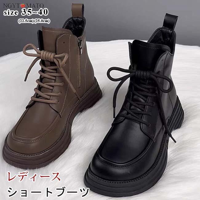 【クーポン利用で500円OFF】ショートブーツ 合皮調 女性用 靴 おしゃれ 可愛い かわいい レディースシューズ ラウンドトウ 編上げブーツ ブーツ ショートブーツ レースアップ