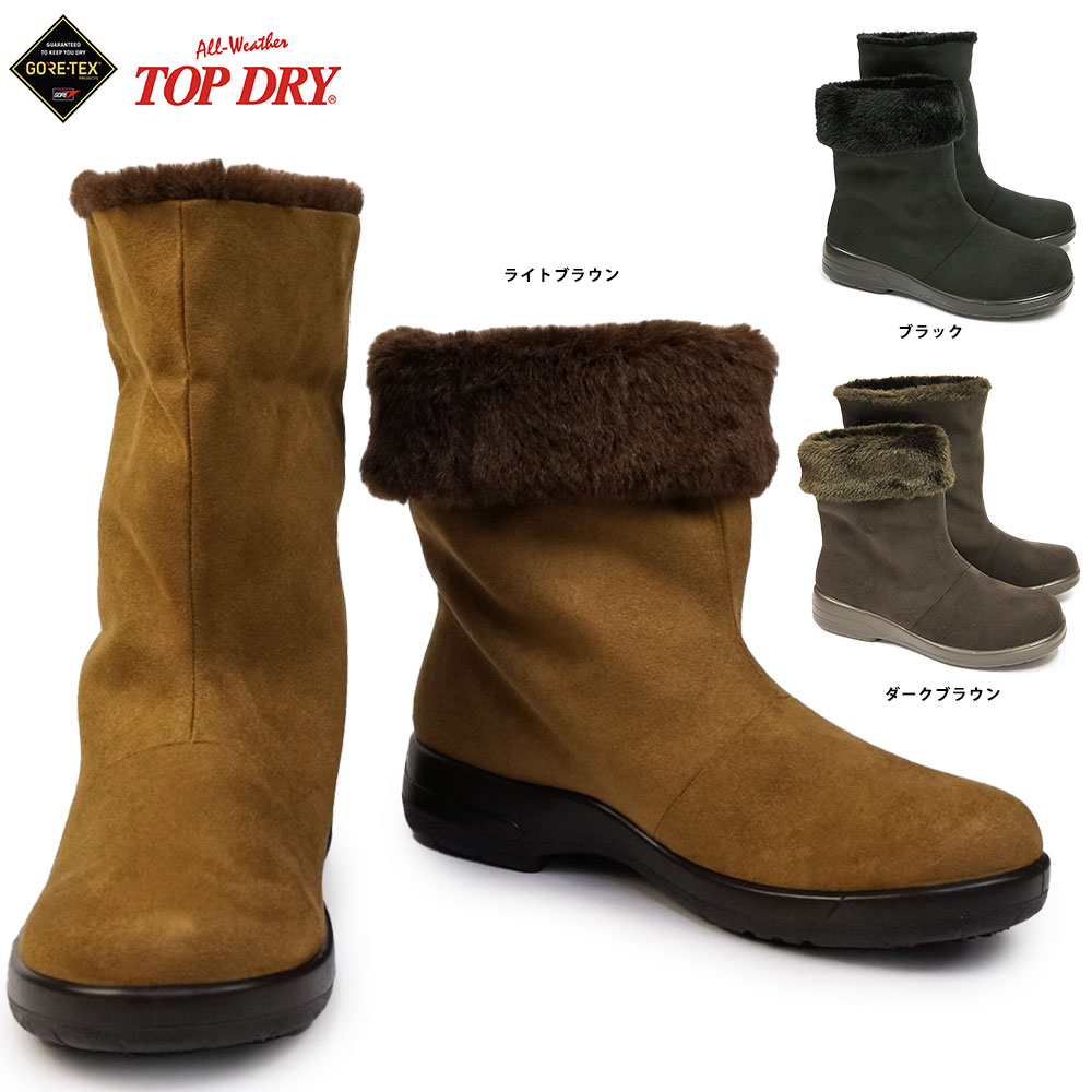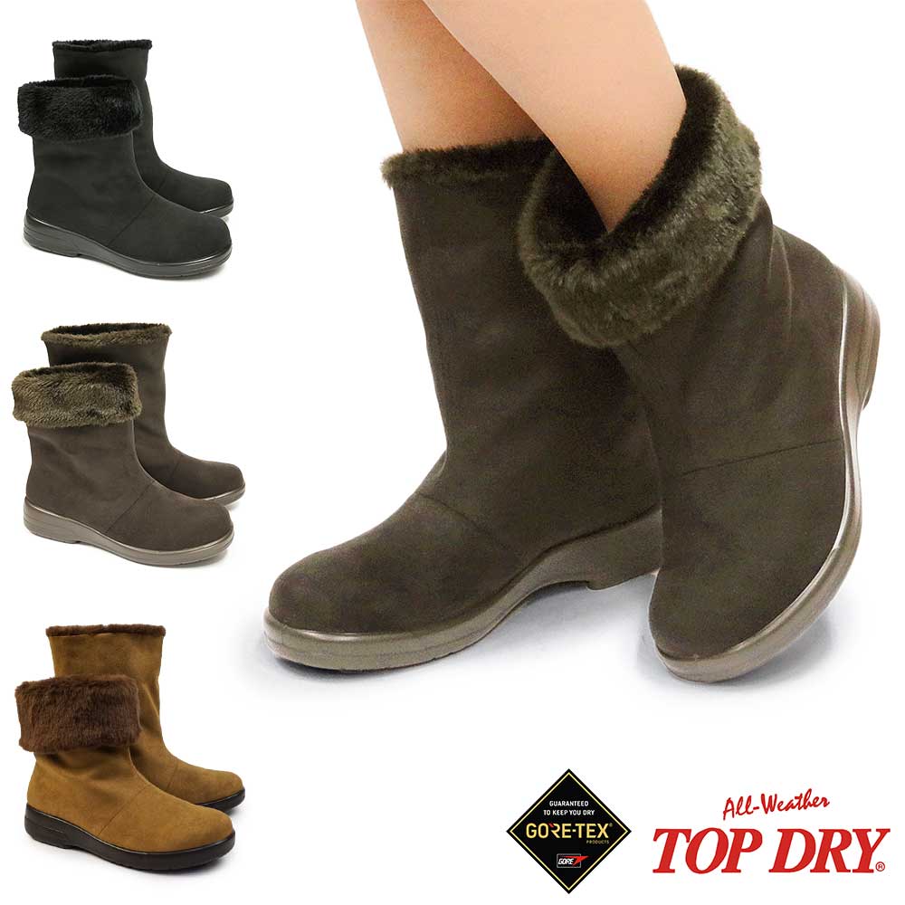 トップドライ レディース ゴアテックス ブーツ TDY3911 ショートブーツ 防水 3E 幅広 ファー 日本製 国産 アサヒシューズ EEE ブラック ダークブラウン TOPDRY アサヒシューズ