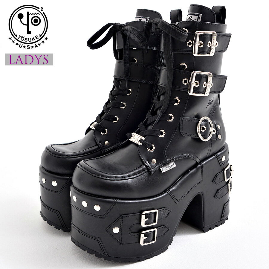 商品説明 YOSUKE【ヨースケ】レディースデザインベルトスタッズプラットフォームブーツが登場。 厚底ソールにベルトデザインやスタッズを配置した存在感抜群のブーツ。 内側ジッパーでサッと脱ぎ履き出来るのも嬉しい。 パンツスタイルにもスカートにも相性◎ サブカル系、地雷系、ストリート系まで 幅広くコーデに合わせられるオススメブーツです。 YOSUKEメンズシューズ一覧を見る サイズスペック 重量:8...