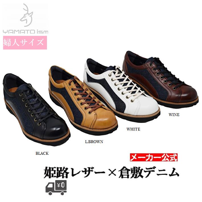 レディース 本革 倭イズム 靴 婦人靴 革靴 シューズ おしゃれ 日本製 軽量 国内 クッション 黒 ワイン ブラウン ホワイト レザー 革 牛革 デニム 紐 ヤマトイズム かわいい シューセラー
